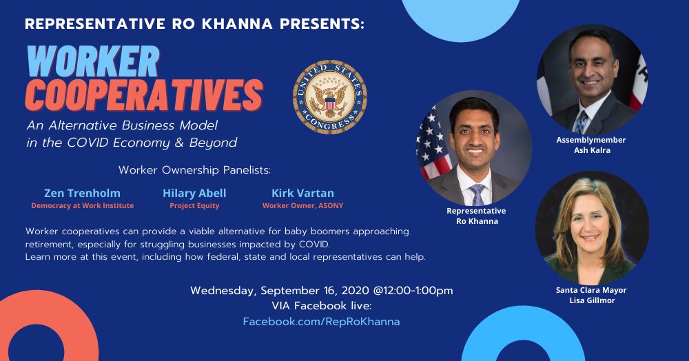 A roundtable panel discussion led by Representative Ro Khanna titled: Worker Cooperatives: An Alternative Business Model in the COVID Economy & Beyond.