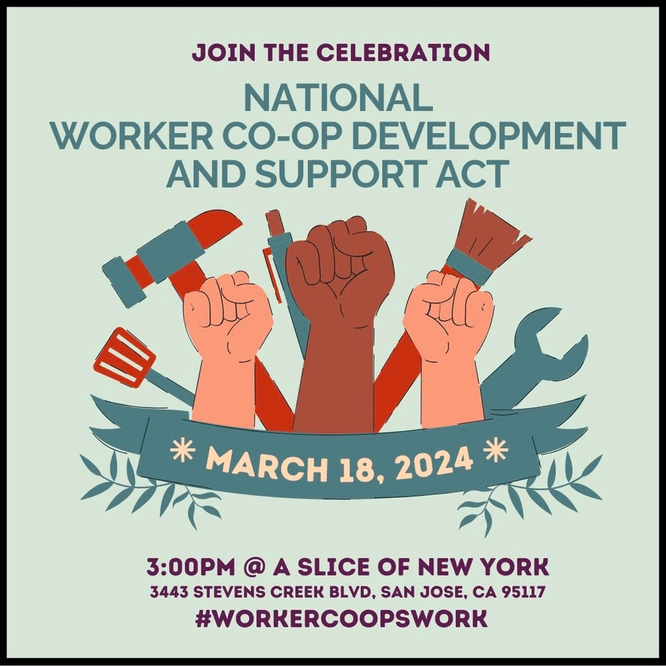 On Monday, March 18th, Rep. Ro Khanna will be introducing the National Worker Cooperative Development and Support Act at A Slice of New York’s headquarters in Santa Clara/San Jose. This is a first-of-its-kind bill purely focused on worker cooperatives.